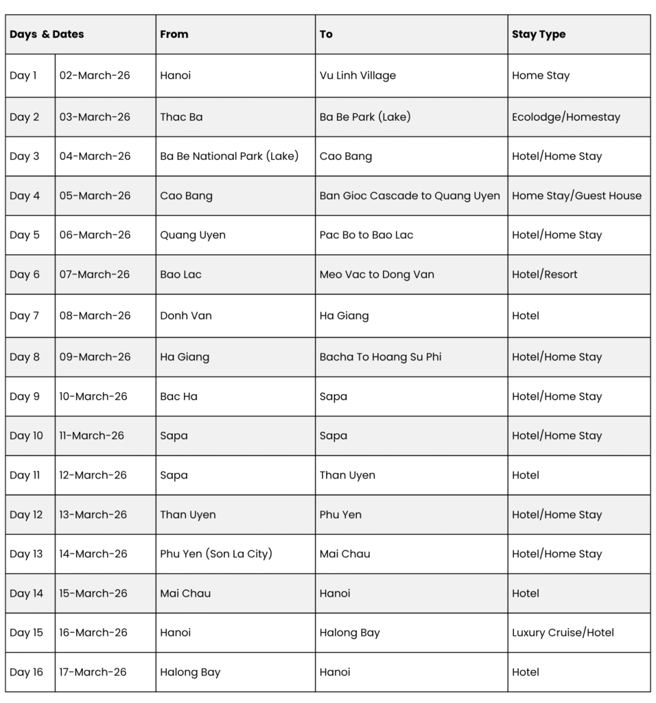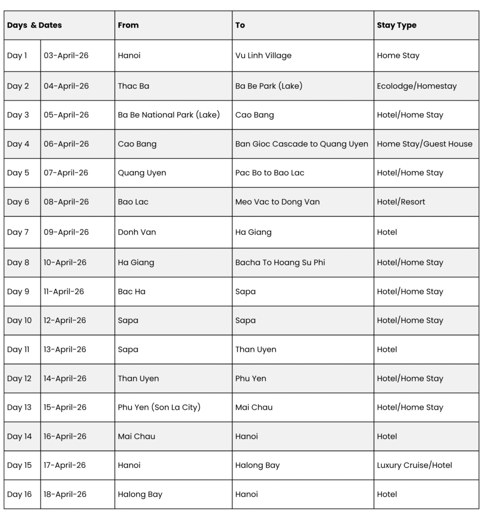 This package is designed to ensure you have an unforgettable , hassle-free adventure while exploring the stunning landscape of Vietnam!